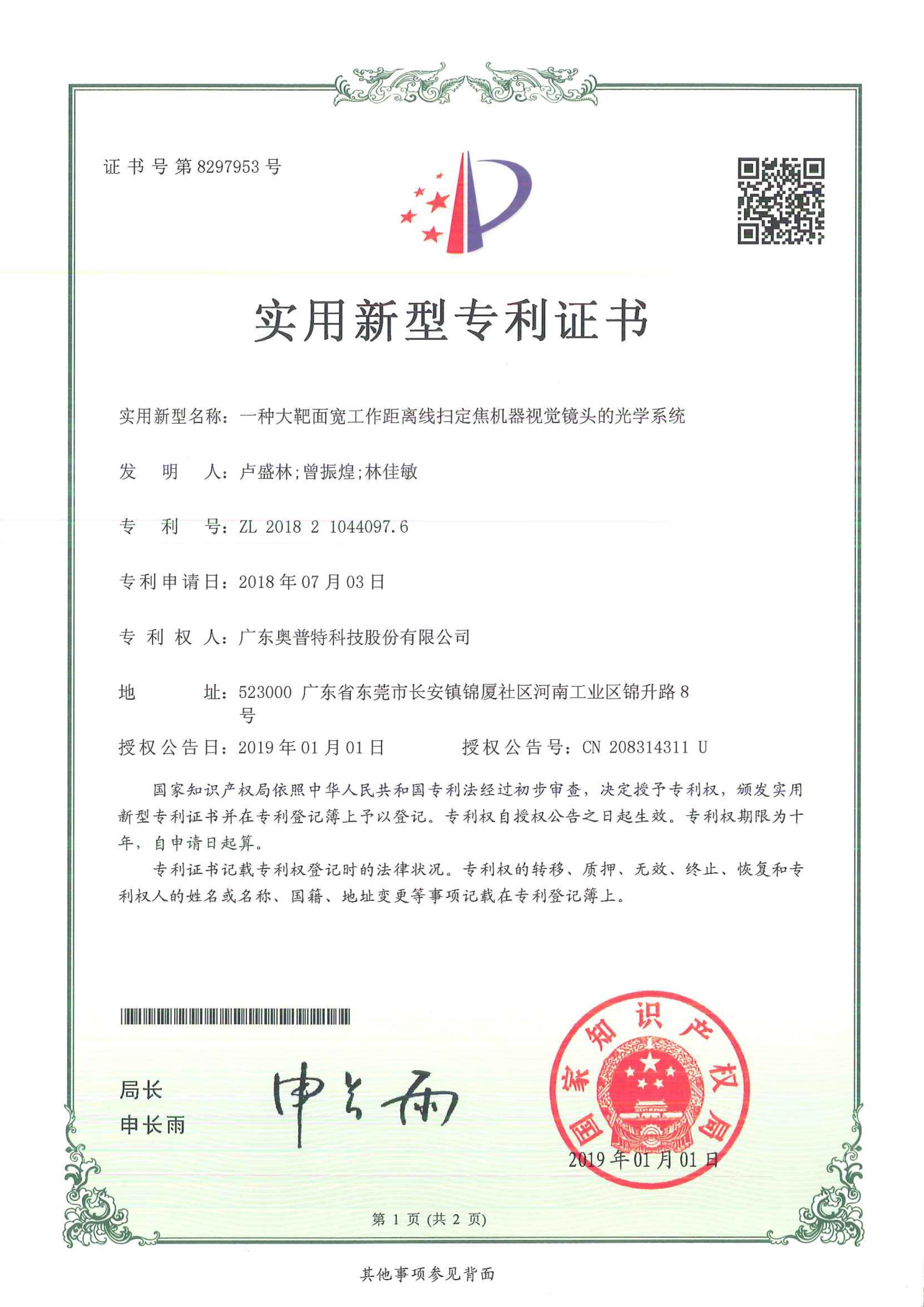 一种大靶面宽工作距离线扫定焦机器视觉镜头的光学系统
