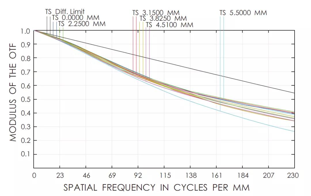 OPT-COB2528的理论MTF曲线图