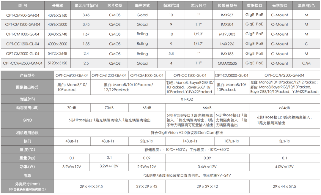 接下来,我们将带您了解OPT(奥普特)工业相机中的重要成员:面阵系列工业相机。